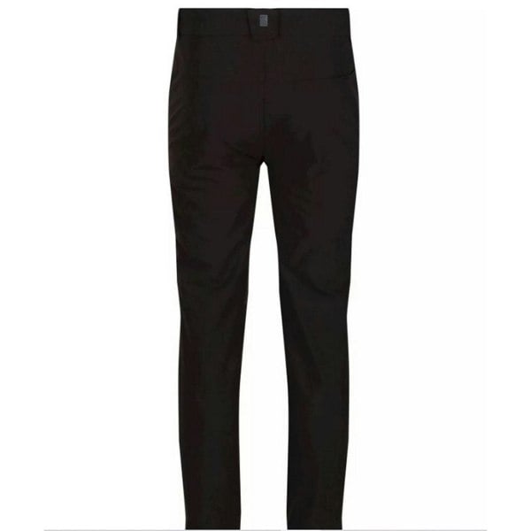 Regatta Children’s Highton trousers in black are made from a stretch fabric with 94% polyamide and 6% elastane, with a scrim lining. The design includes a logo and a back yoke, with belt loops and a part elasticated waistline.