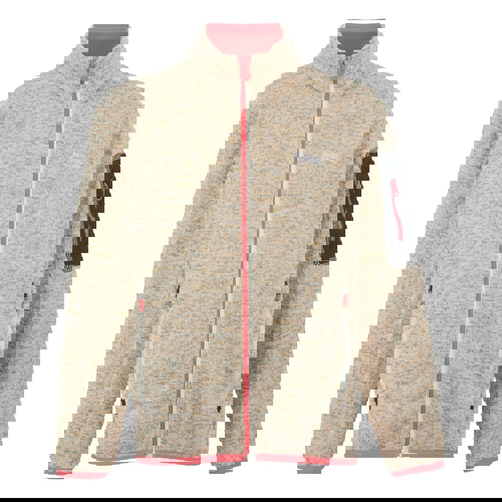 This children’s Newhill fleece jacket from Regatta comes in Light Vanilla/Peach Bloom with a knit-effect marl finish and contrast detailing. Made from 100% polyester, it has a 250gsm fabric weight and a comfort fit. The standing collar and long sleeves are finished with stretch binding at the cuffs and hem for a neat outline.