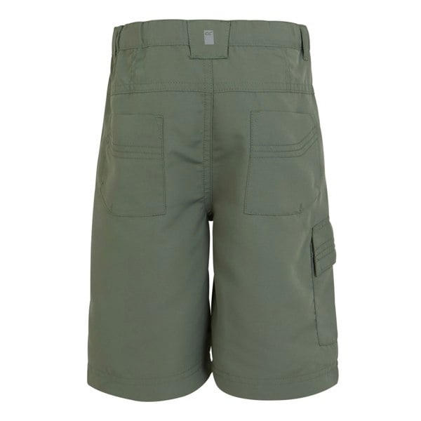 Regatta Sorcer II shorts in agave green. Made from lightweight polyamide fabric with a durable water repellent finish, these shorts are quick drying and crease resistant. A part-elasticated waist includes a button adjustment system for a secure fit, while multiple pockets provide practical storage. Reflective trim adds a clear finishing detail.