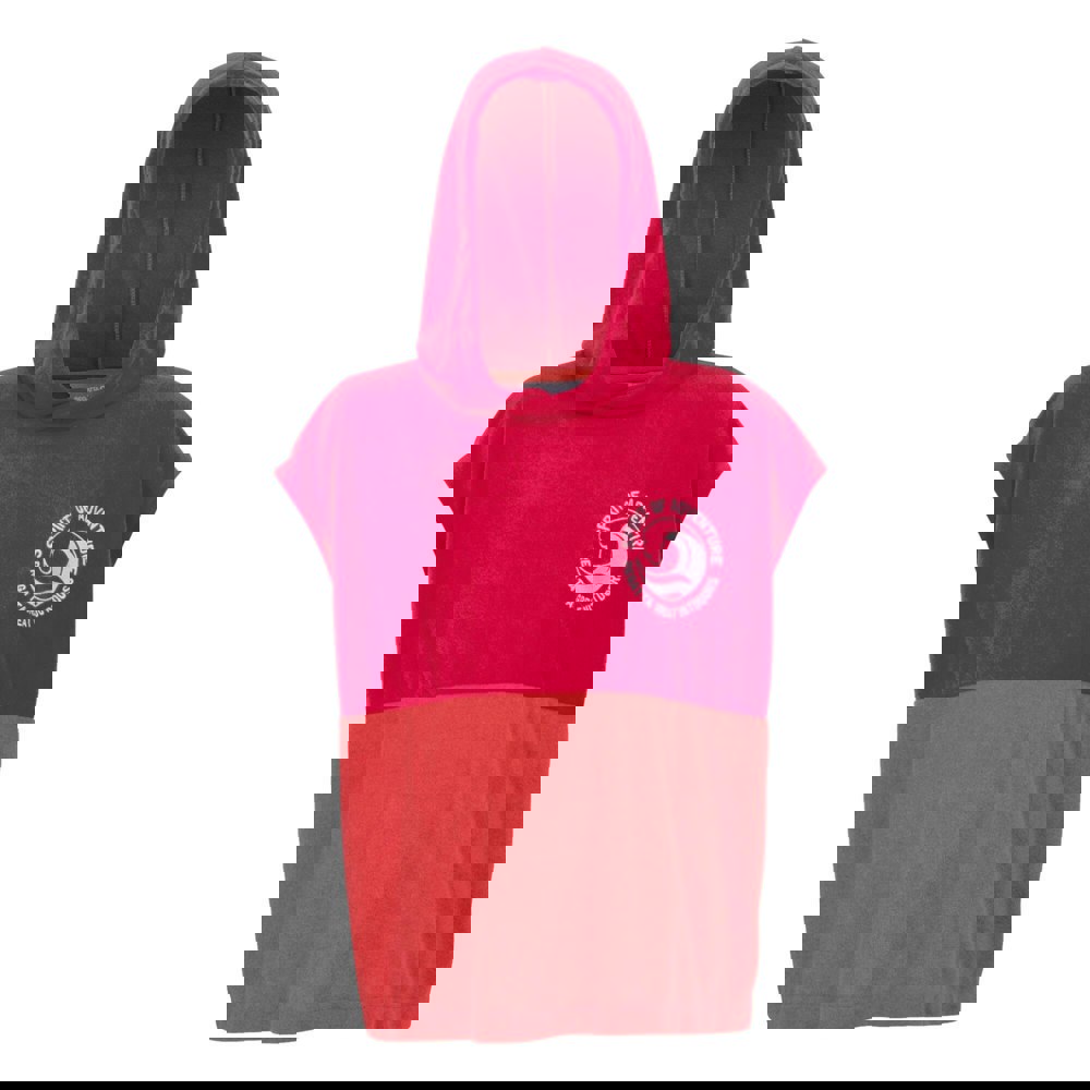 Finished in a colour block design with text detailing, this robe features a cut and sew panel construction for a defined look. A grown on hood adds extra coverage, making it a handy layer when you want a little more warmth around the head and neck.