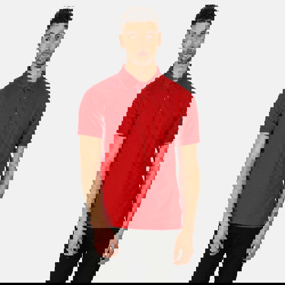 This short sleeve polo shirt is made from 65% polyester and 35% cotton piqué fabric with a 200gsm weight. It has a classic polo design, finished in Classic Red for a clean, simple look.