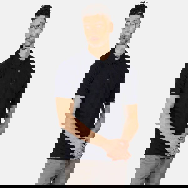 This short sleeve polo shirt is made from 65% polyester and 35% cotton piqué fabric, with a 200gsm weight. A classic three-button placket keeps the look clean and traditional, while side vents add a neat finishing detail.