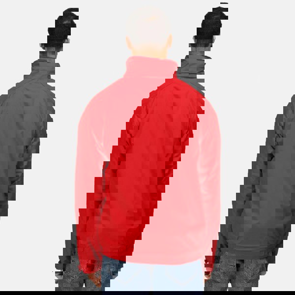 A concealed hood sits neatly away when not in use, while adjustable cuffs and a stormflap with hook and loop fastening help secure the fit. Storage includes two zipped lower pockets and a dedicated mobile phone pocket. A concealed zip entrance in the lining allows embroidery access.