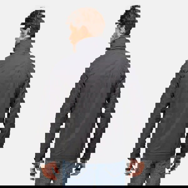This Regatta Dover jacket is made from waterproof, windproof Hydrafort polyester with taped seams. The collar and body are fleece lined, with a 250 series anti-pill Symmetry fleece lining through the body. Sleeves are polyamide lined and include Thermo-Guard insulation.