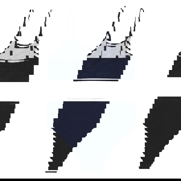 This girls’ Dakaria II bikini set includes a swim top and matching swim shorts in a plain navy finish with logo detail. The fabric blends 85% recycled polyester with 15% elastane and has a stretch feel for comfortable movement in and out of the water.