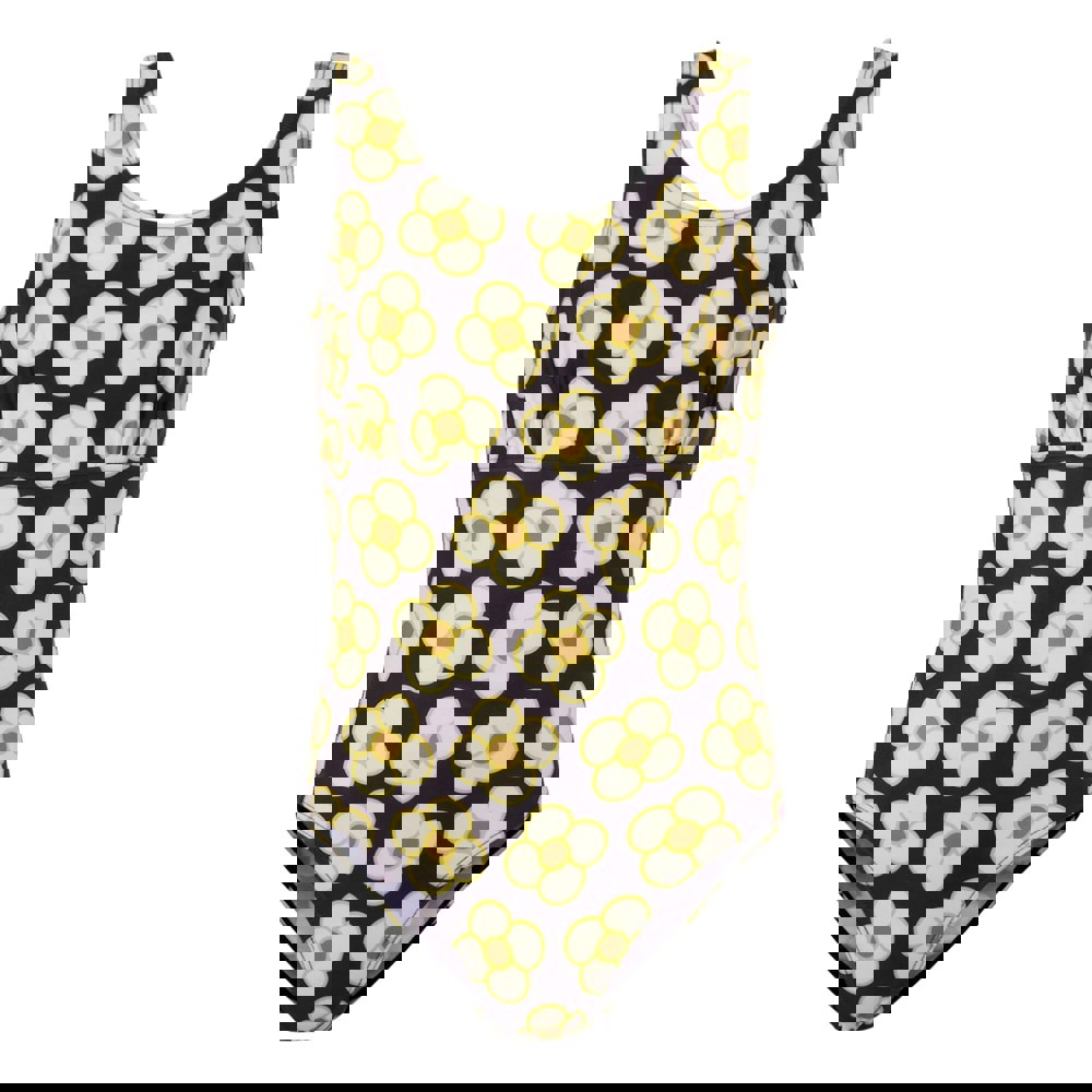 This girls’ one piece swimsuit from Regatta x Orla Kiely comes in black with a stretch fabric blend of polyester and elastane. The design combines an all-over print with a logo and spinning flower motif, finished with a branded tab for a signature touch.