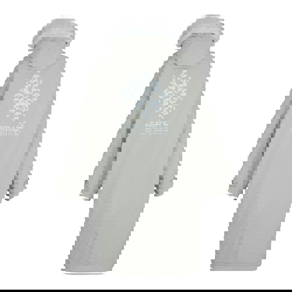This Regatta girls waterproof robe comes in Moonstruck with a printed, patterned finish and logo detailing. It uses Isotex stretch fabric made from 100% recycled polyester, with a 165gsm weight. A durable water repellent finish and waterproof construction are supported by taped seams.