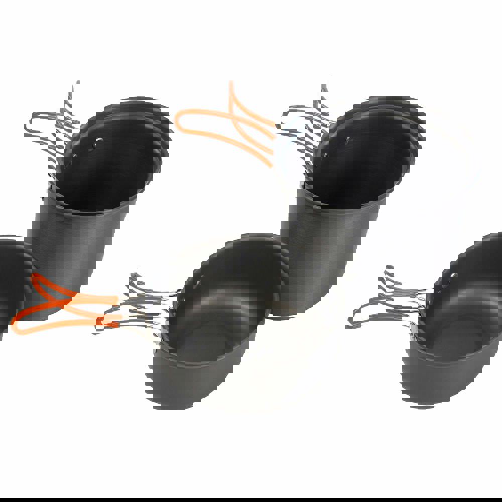 This set includes a 900ml pot and a 350ml pan with a lid, giving you practical options for heating water, preparing quick meals or cooking smaller portions. Folding handles help keep the set compact for storage, and a storage bag is included to keep everything together between uses.