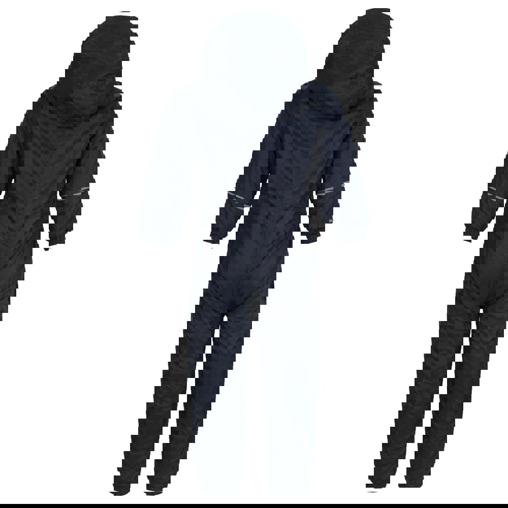This children’s Splosh III rainsuit from Regatta Great Outdoors comes in navy with a plain finish and logo detailing. Made from 100% polyester Isolite fabric, it is both breathable and waterproof, with reflective elements for added visibility. A fleece lining adds extra comfort, while the hood is integral and fleece lined.