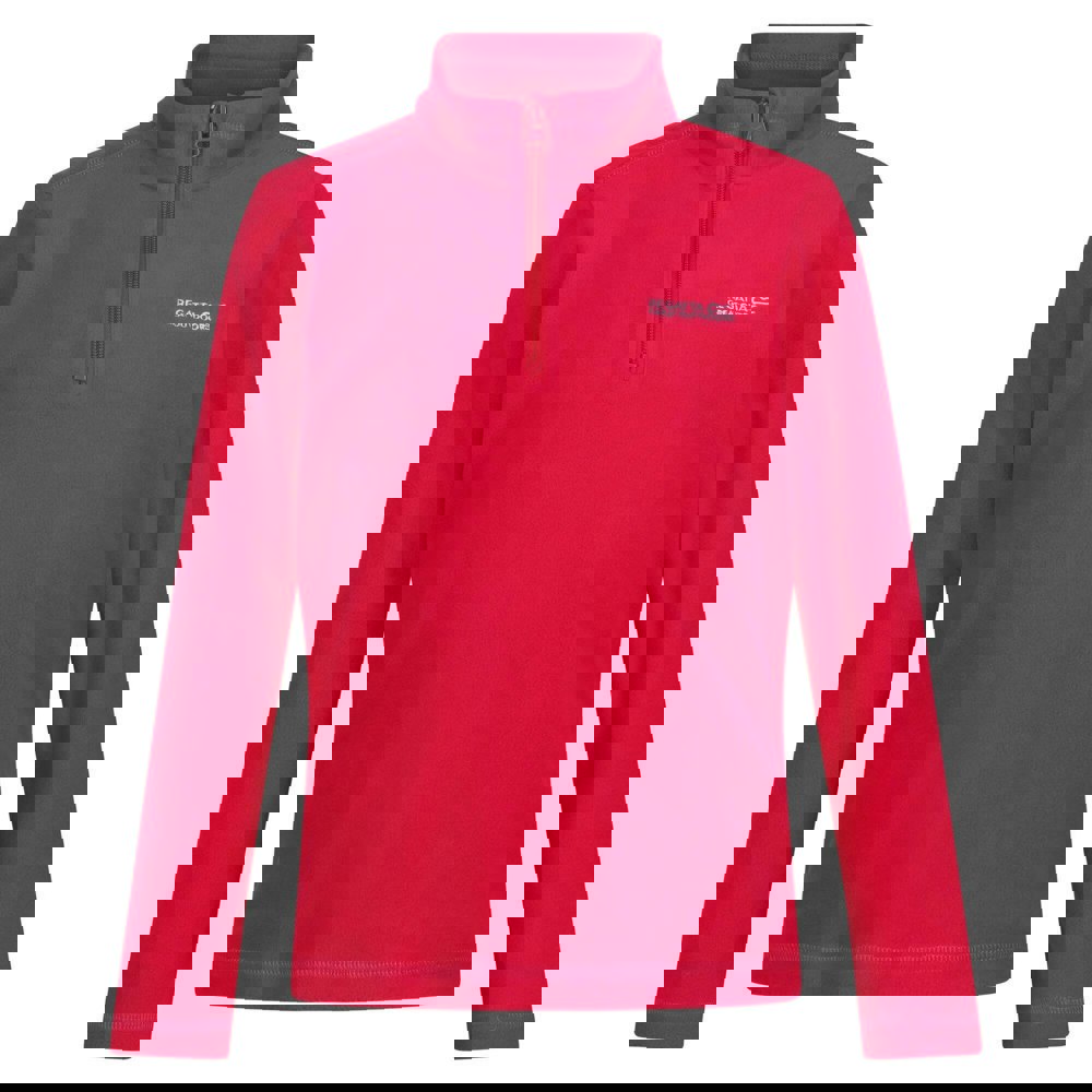 This children’s Hot Shot II half zip fleece top from Regatta Great Outdoors comes in Pink Potion with a plain finish and logo detailing. Made from 100% polyester fleece (170gsm), it has a soft-touch feel with one side brushed and one side anti-pill. Embroidered detail adds a neat finish, while the lightweight, hardwearing construction keeps the design practical and easy to wear.