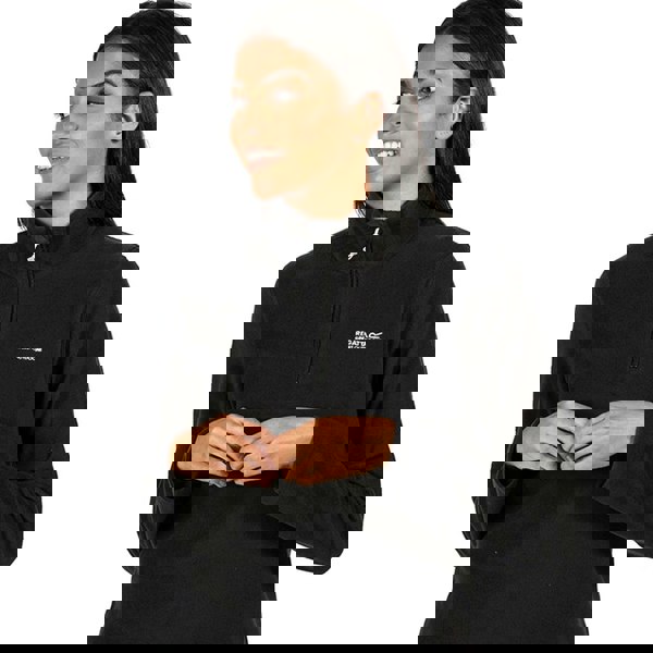 This women’s Sweetheart 1/4 zip fleece top from Regatta Great Outdoors is made from 100% polyester with a 170gsm weight. The plain black design is finished with embroidered detail and a logo for a clean, understated look.
