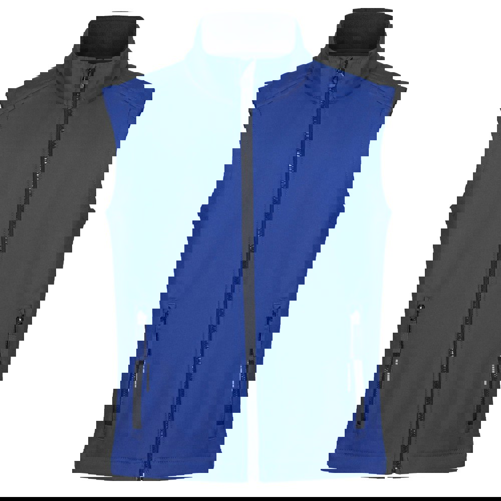 This kids’ softshell body warmer is made from 100% polyester with a fleece lining and a plain finish. It has a standing collar and a sleeveless cut, with a full zip fastening and an inner storm flap. A chin guard adds extra coverage at the top of the zip, while two front zip pockets provide secure storage.