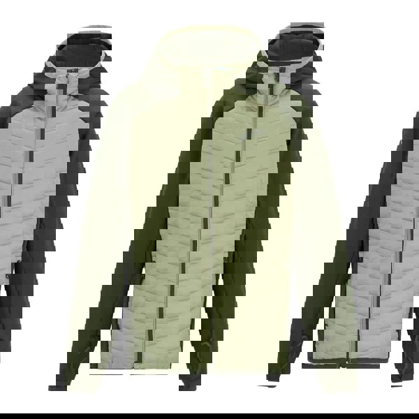 Built for changeable days, the Regatta Kids Andreson Hybrid padded jacket combines lightweight warmth with practical, weather-ready details. This long-sleeved, hooded style comes in dark khaki and light sage with a plain finish, finished with a Regatta logo and reflective trim for added visibility. A grown-on hood and full zip fastening keep the silhouette clean and easy to wear, while two zipped side pockets provide secure storage. Made with stretch Warmloft fabric, it includes a durable water repellent finish and a flexible feel.