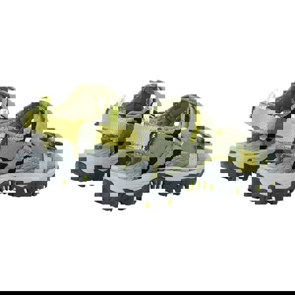 Regatta Kids Blaze Sandals in Nephrite Green/Wild Lime combine a mesh and synthetic upper with a synthetic lining and synthetic outsole. The open-toe shape is finished with contrast detail and a logo for a clean, sporty look. A hook and loop strap secures the fit, while a pull tab supports easy on and off.
