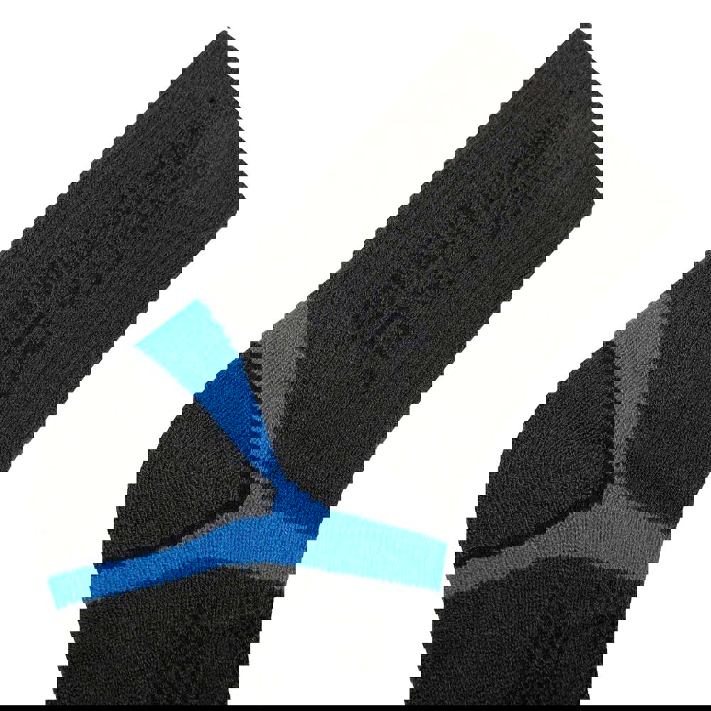 Regatta Kids Blister Protect II Crew Socks come in dark grey with snorkel blue detailing. The mesh fabric uses a blend of acrylic, bamboo viscose, elastane and polyamide. Anti-bacterial, anti-odour, crease resistant, impact resistant, lightweight, moisture wicking and quick dry fabric technologies are specified.