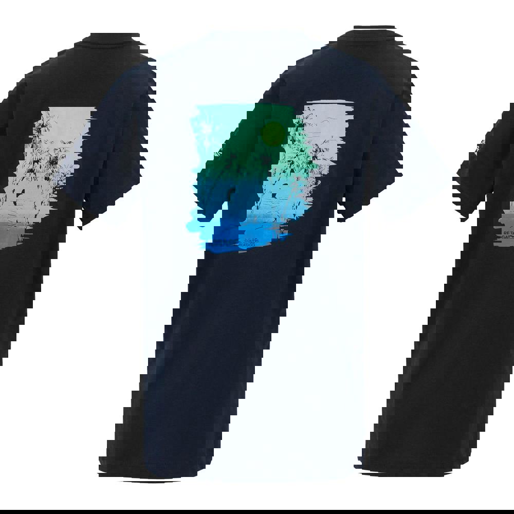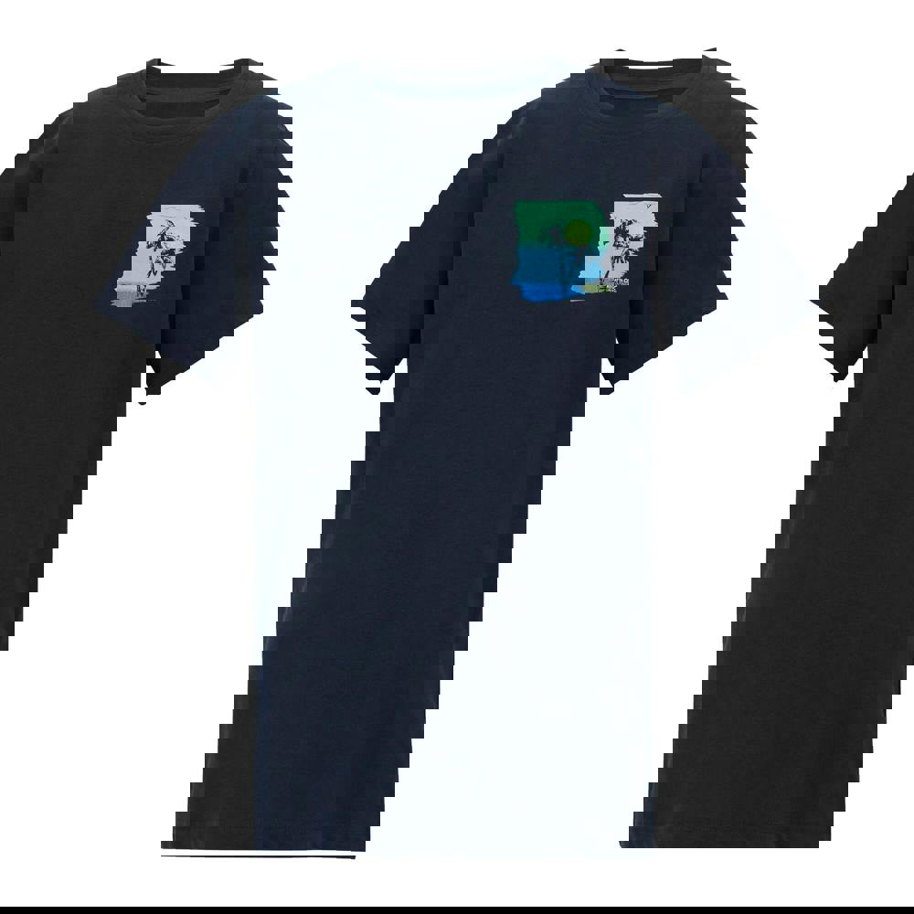 Regatta Kids Bosley back print T-shirt in navy, made from 100% cotton single jersey. The fabric has a soft handle and a 160gsm weight. A printed design sits on the back, with a crew neckline and short sleeves for a classic T-shirt shape.