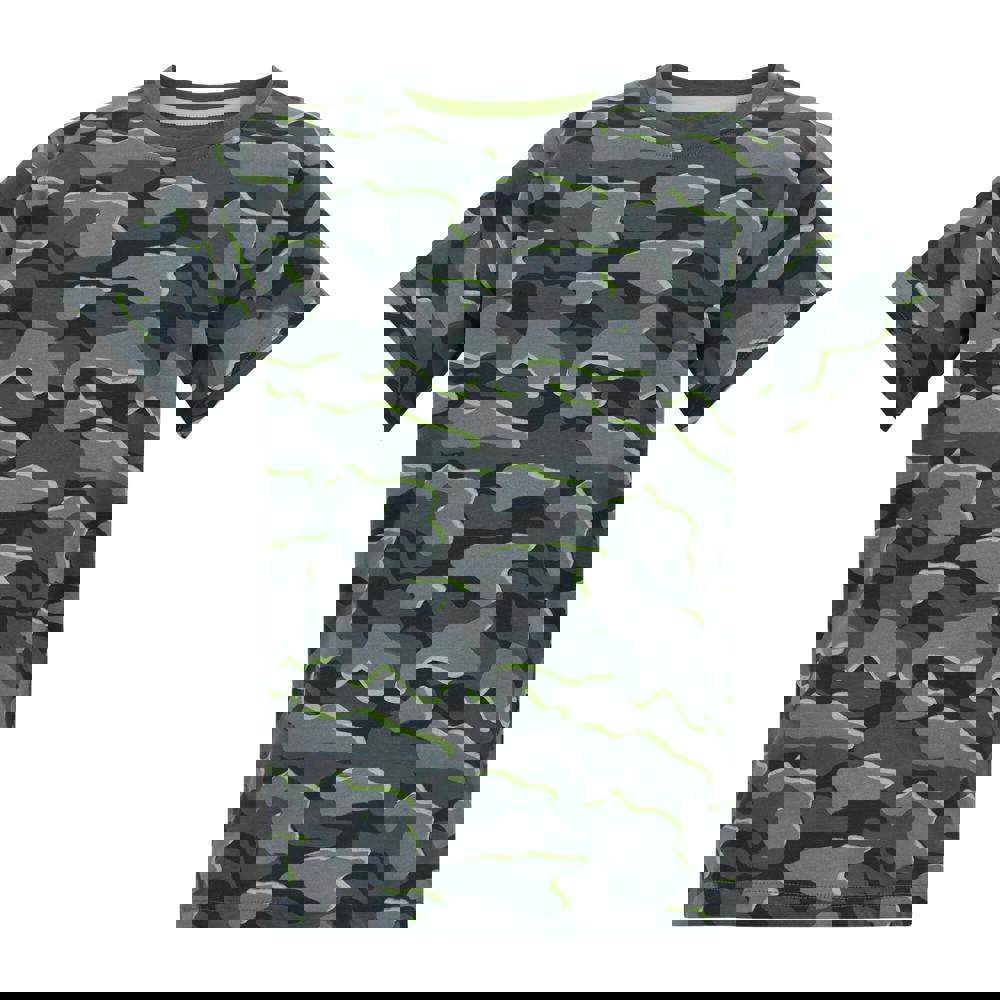 Regatta Kids Bosley Camo T-Shirt in Dark Storm is made from 100% cotton in a single jersey fabric with a soft-touch finish. The design combines a camo print with a printed logo, keeping the look bold and graphic.