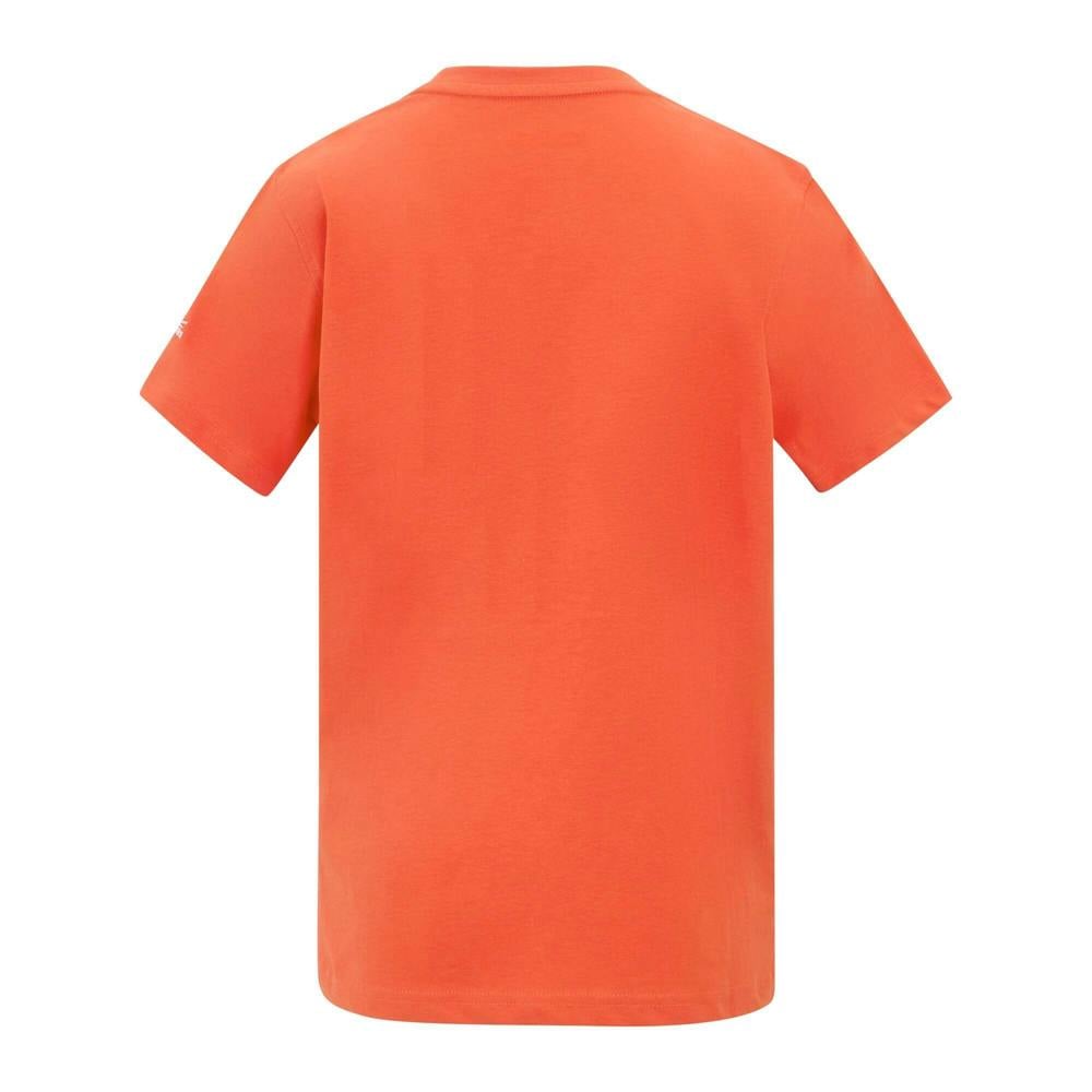Regatta Kids Bosley Palm Tree T-Shirt in rusty orange. Made from 100% cotton single jersey, this short-sleeved style has a crew neck and a printed design. Fabric weight 160gsm.