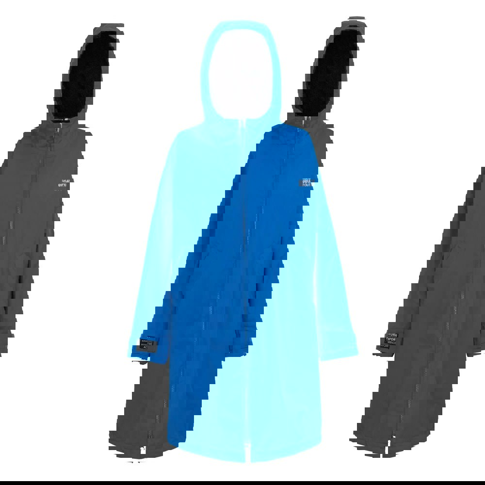 This kids’ changing robe from Regatta is made from 100% polyester and uses Hydrafort 5000 fabric. The lining combines borg and fleece, with a DWR finish and taped seams. Waterproof and windproof construction is paired with high warmth for added protection in changeable conditions.