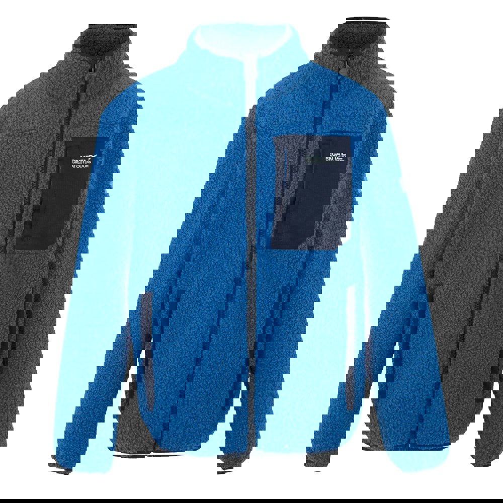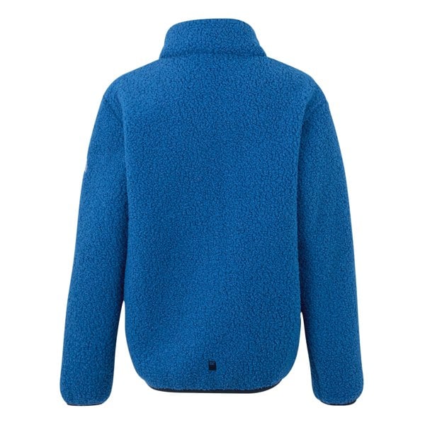 Regatta Kids Frankie full zip fleece jacket in Snorkel Blue, made from 100% polyester and produced using recycled materials. The plain design combines micro poplin, microfleece and borg fabrics with a lightweight, insulating finish. Long sleeves and a standing collar create a clean, practical shape, with stretch binding at the neckline, cuffs and hem for a neat edge.