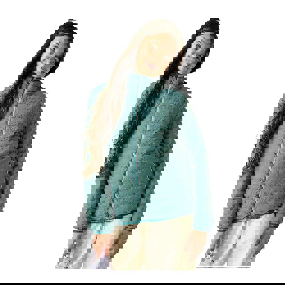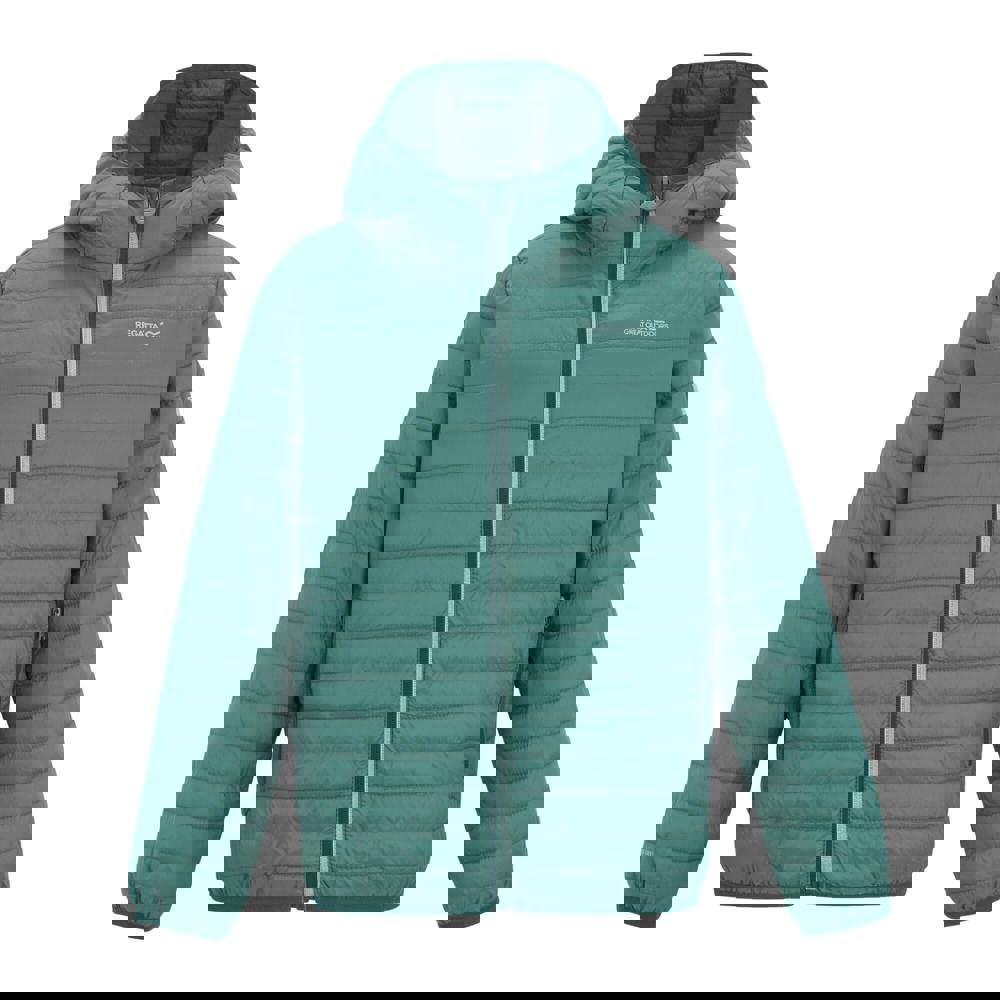 The Regatta Kids Hillpack Hooded Jacket in Ivy Moss is made from 100% polyamide and uses recycled materials. Quilted with a lightweight 37gsm construction, it includes a durable water repellent finish. The hooded neckline has an elasticated grown-on hood with stretch binding for a neat edge.