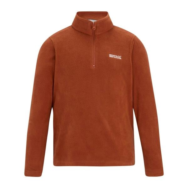 Built for everyday layering, the Regatta Kids Hot Shot II half zip fleece top comes in brick with a plain finish and logo detailing. Made from 100% polyester fleece at 170gsm, it has a soft-touch feel with one anti-pill side and one brushed side, plus embroidered detail. A high neck and half zip fastening make it easy to wear, while long sleeves and a regular fit keep the look simple and practical for kids.