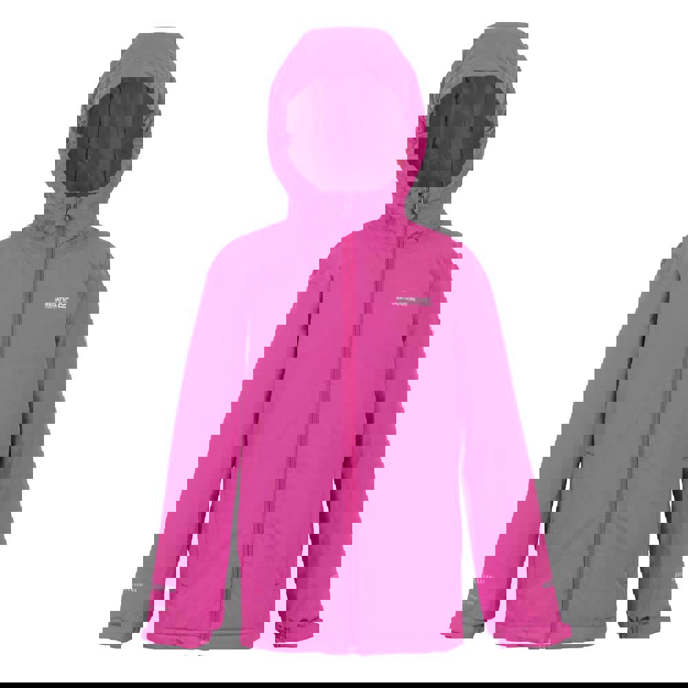 The Regatta Kids Hurdle insulated waterproof jacket comes in raspberry rose with a plain finish, logo detailing and reflective elements. It uses 100% polyester fabric with a durable water repellent finish and Isotex 15000 technology. The jacket is waterproof, windproof and breathable, with taped seams and 360 degree reflection.