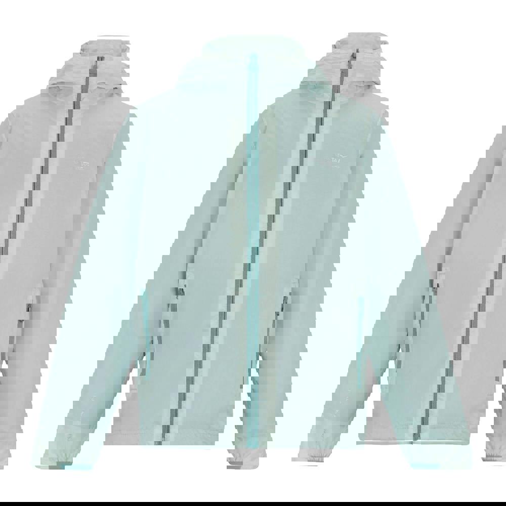 This kids’ waterproof shell jacket from Regatta comes in Ocean Mist with contrast detailing, a logo and mountain design. Made from 100% polyamide with a mesh lining, it has a lightweight 80gsm construction and a durable water repellent finish. The hooded neckline is paired with a grown-on hood with mesh lining, while long sleeves and taped seams complete the outer.