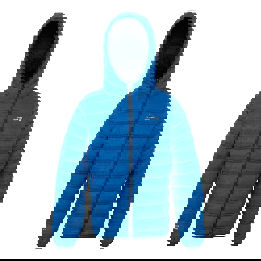 The Regatta Kids Marizion hooded padded jacket comes in Snorkel Blue and Moonlight Denim, with a quilted finish and contrast trim. Made from 100% polyamide, it uses a midweight synthetic fibre filling that is down and feather-free. A DWR finish supports water-repellent, weather-resistant wear, while the lightweight, insulating construction keeps the profile streamlined.
