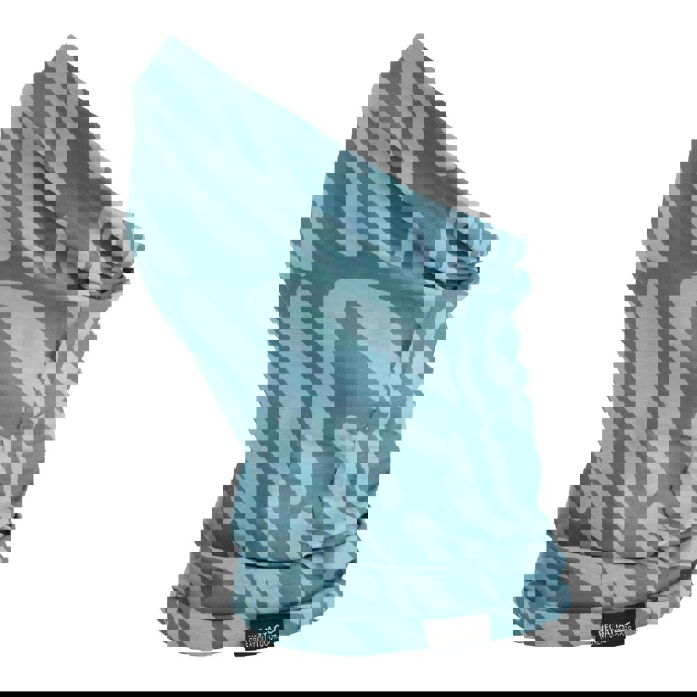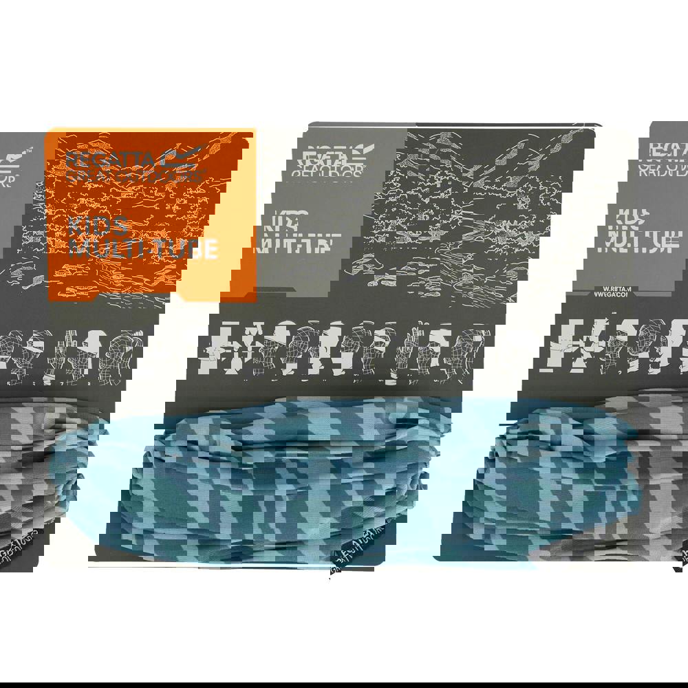 Regatta Kids Multitube II Flower Snood in Spruce Green/Green Haze is made from 100% polyester with a knitted, stretch fabric. The design combines a flower motif with a logo print. Lightweight construction sits alongside moisture wicking and quick-dry fabric technology, with wind-resistant performance.