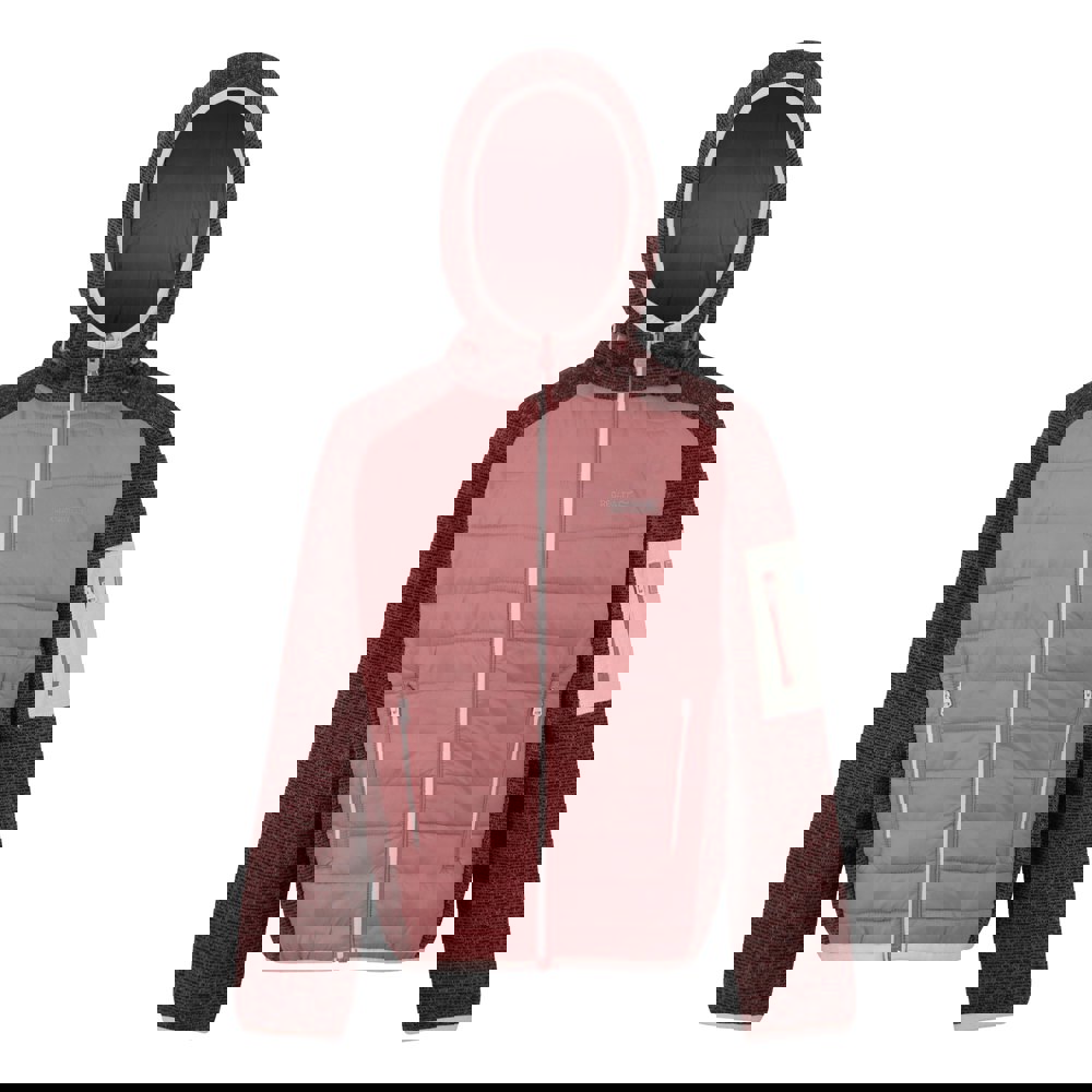 The Regatta Kids Newhill Hybrid Jacket in dusty rose combines a brushed-back knitted fabric with 120gsm filling for a lightweight, flexible feel. A durable water repellent finish adds practical protection, while the hooded neckline includes a sew-on hood with stretch binding and a toggle adjuster.