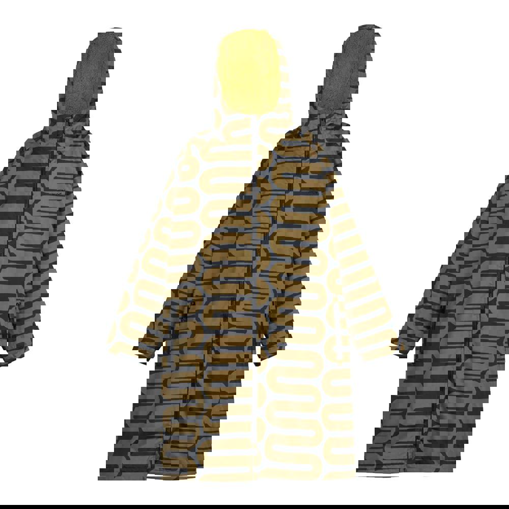 This kids’ changing robe comes in olive with an all-over spotted print. It is made from 100% polyester, using Hydrafort fabric and recycled materials. The outer has a durable water repellent finish and a waterproof construction, with taped seams. Inside, it is fleece lined.