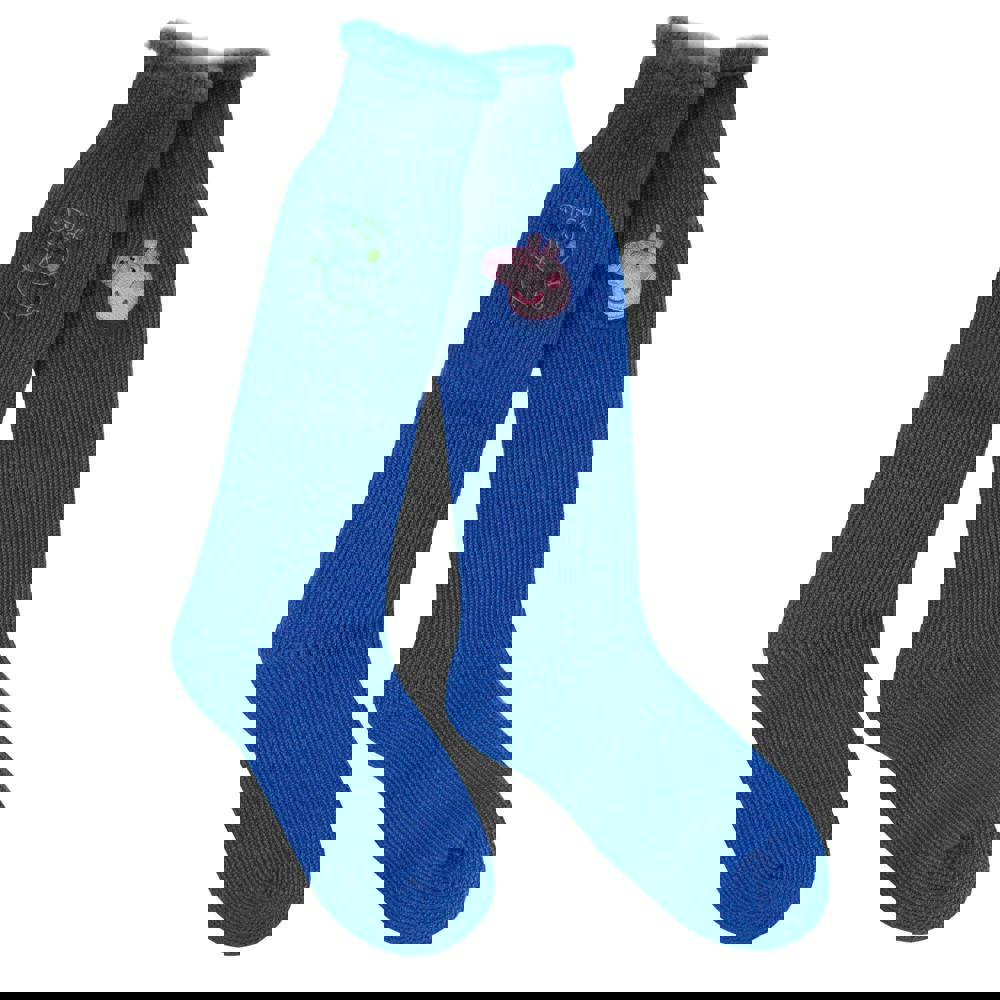 These Regatta kids’ boot socks come in a pack of two and are finished in blue with George Pig character detailing. Made from a blend of 63% acrylic, 28% polyester, 6% polyamide and 3% elastane, they combine a ripstop fabric with a brushed lining.