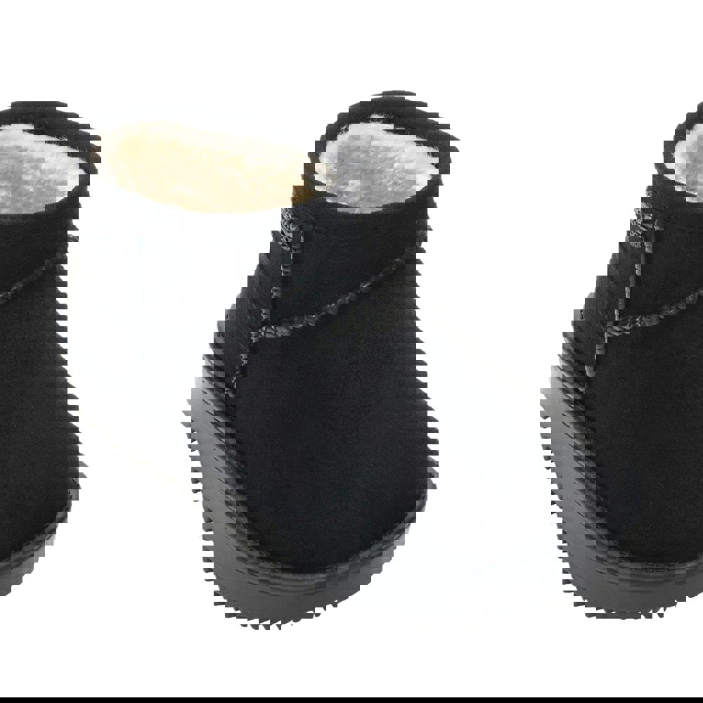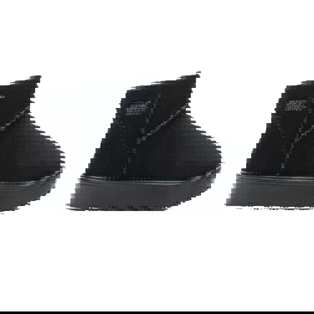 Regatta Kids Risley waterproof winter boots in black with a plain finish and round toe. The ankle-cut shape and slip-on fastening keep the look simple and easy to wear. A moulded upper combines polyester and PVC, with a faux fur lining and a TECFOAM insole. Underfoot, the PVC outsole has angled lugs and a gripped tread, with a flat profile.