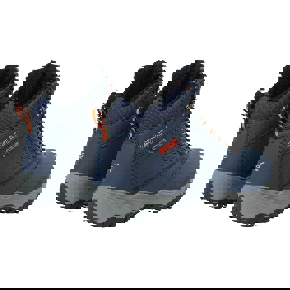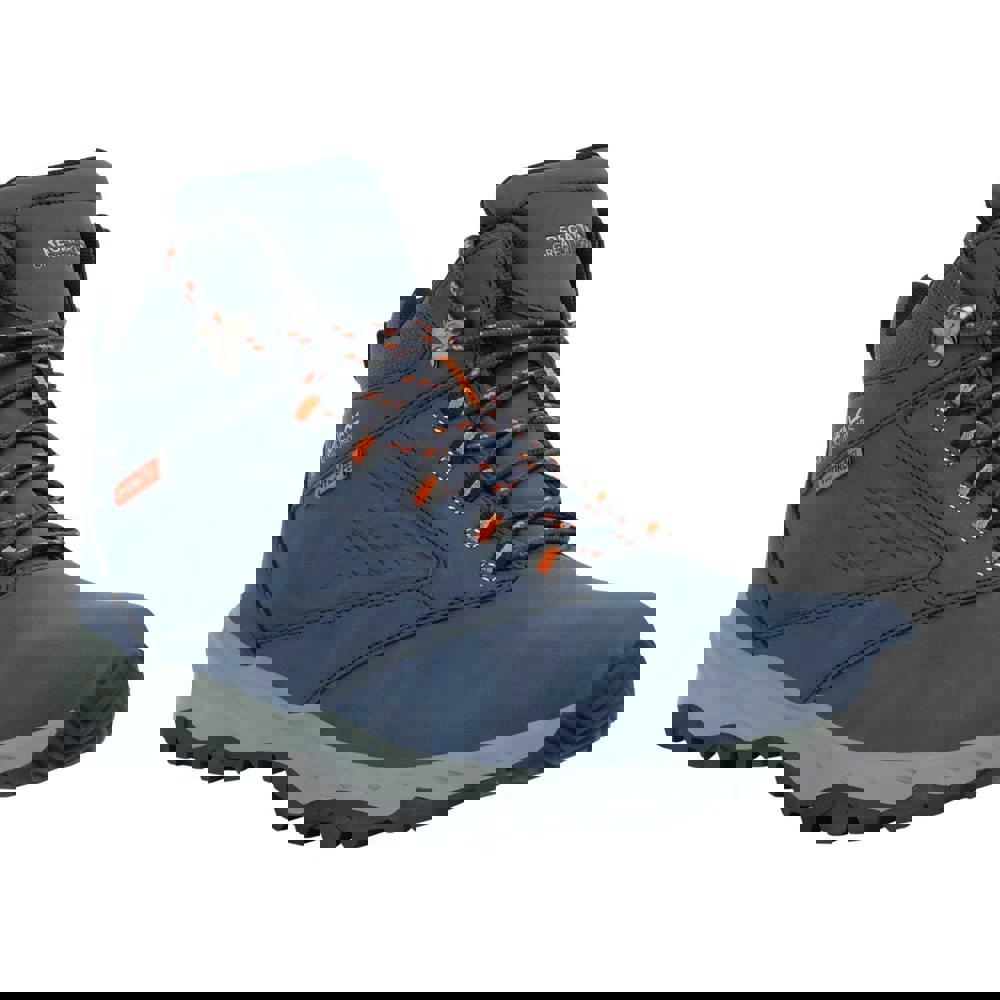 These men’s Amble walking boots from Regatta come in Moonlight Denim/Tango with a plain finish and logo detail. Cut to the ankle with a round toe, they fasten with laces through six eyelets for a secure fit. A cushioned tongue and pull tab add practical detailing for everyday wear.