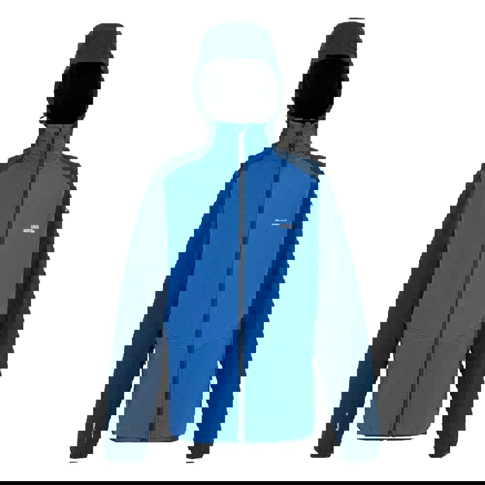 The Regatta Arec III jacket comes in Snorkel Blue and Moonlight Denim with a contrast design and a woven softshell fabric. Made from 96% polyester and 4% elastane, it has added stretch for comfortable movement. A hooded neckline and zip neck sit alongside a full zip fastening for easy layering.