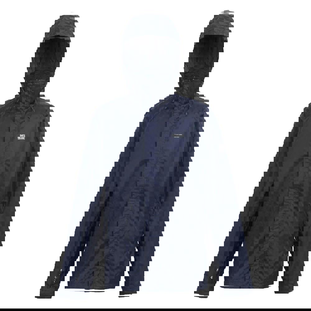 Built for wet and windy conditions, this Regatta Ballymore jacket comes in navy ripstop fabric with a plain finish and logo detail. It is made from 100% polyamide and includes a mesh lining. A hood and standing collar add coverage, while long sleeves are finished with touch fastening cuff tabs.