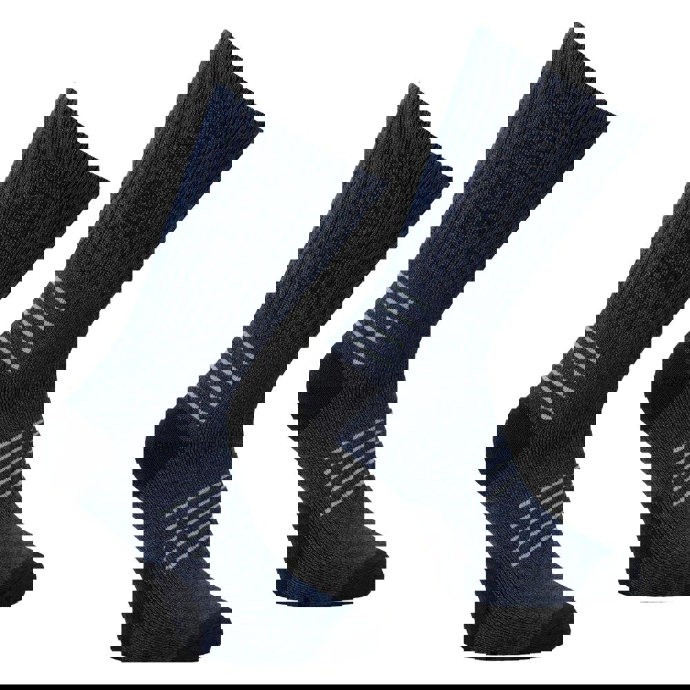 Regatta men’s bamboo crew socks in navy/dark steel. Made from a bamboo viscose blend with added polyamide and elastane, they have a soft-touch feel and breathable fabric technology. A ribbed cuff helps keep the crew length in place, while instep panels add structure through the foot. Finished with a flat toe seam for a smooth feel at the front of the sock.