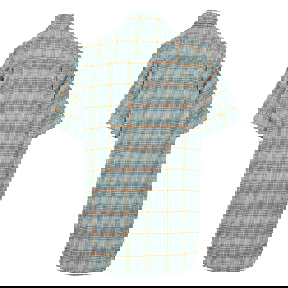 This checked short-sleeved shirt is made from a woven stretch fabric with a 125gsm weight. It has a button-down fastening and a turn down collar for a clean, structured finish. A single chest pocket adds a practical detail, while side vents provide ease of movement.