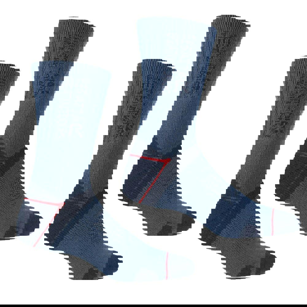 Regatta Men’s Blister Protection II socks come as a pack of two in dark denim and dark red. Made from a blend of 75% acrylic, 22% polyamide and 3% elastane, they use 2 layer fabric technology with comfort stretch and a durable construction. Anti-bacterial fabric technology is included.