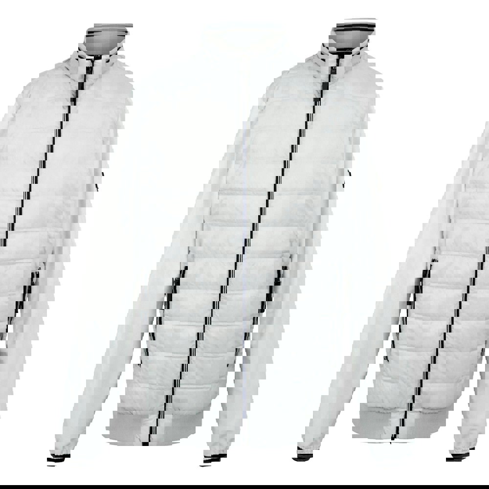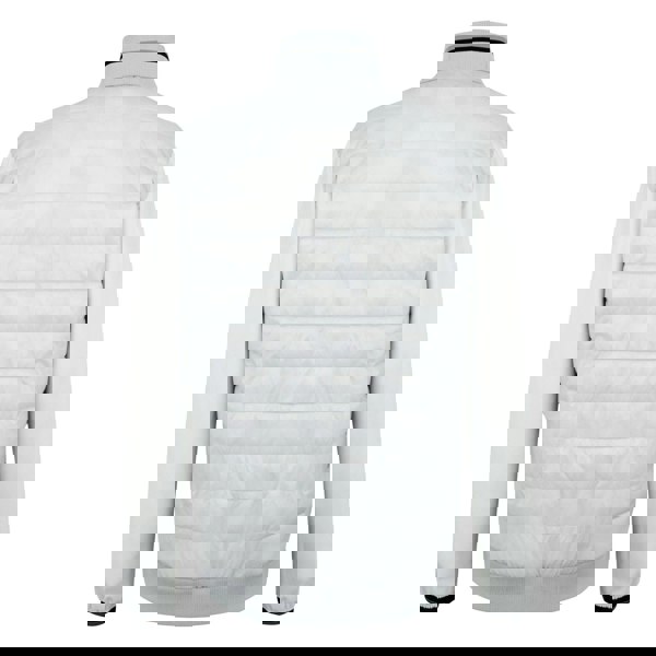 This hybrid jacket is made from a woven fabric with elastane, polyamide and polyester, finished with a 240gsm construction. It includes a lightweight 60gsm filling and a polyamide lining for a clean internal finish. Logo and tipped detailing add a defined look, while the medium-high neckline is completed with a ribbed collar.