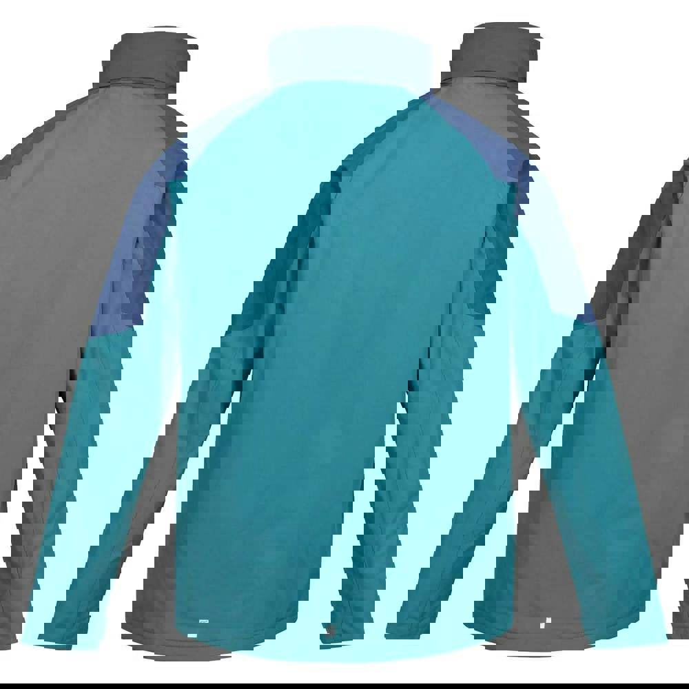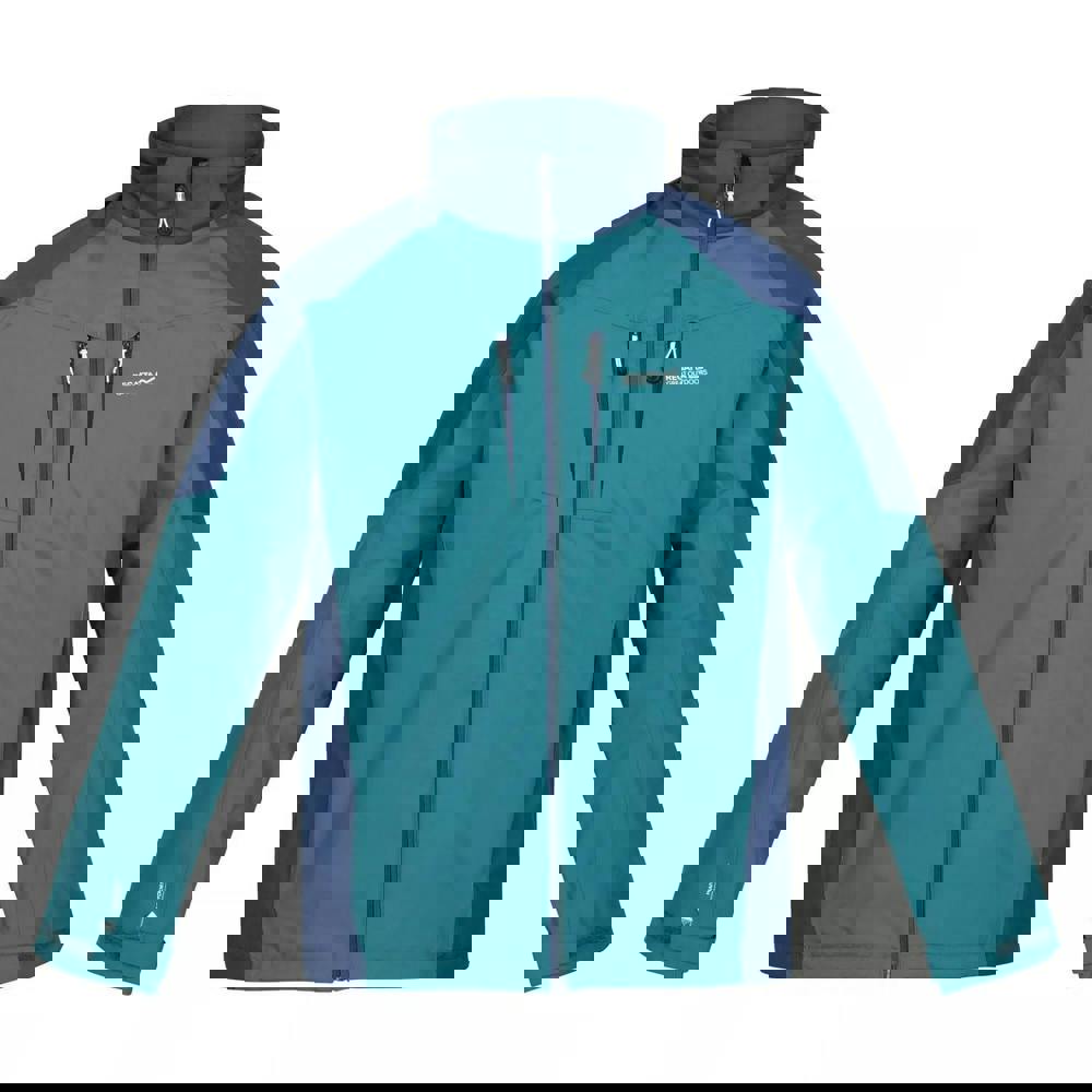 This men’s Calderdale waterproof jacket from Regatta is made in Hydrafort fabric with a colour block design and logo detailing. It uses a DWR finish with Thermo-Guard insulation and is both waterproof and windproof, with taped seams for added protection. Long sleeves and a standing collar keep the profile clean, while the hood sits concealed and adjusts when needed.