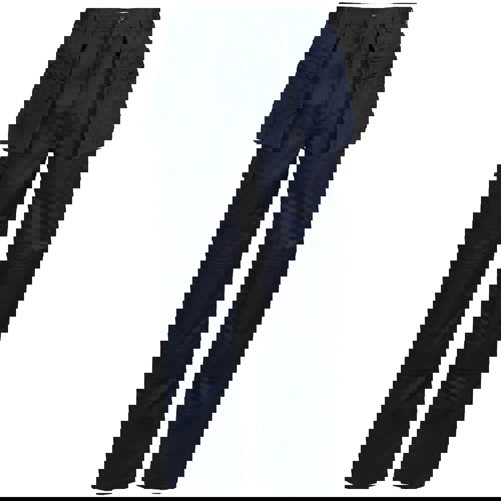 These men’s cargo trousers are made from a 65% polyester and 35% cotton fabric with a 245gsm weight. Finished in a plain navy design, they combine a regular fit with a part-elasticated waistline for everyday wear.