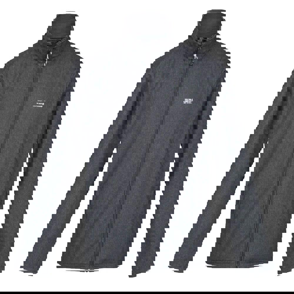 This men’s soft shell jacket comes in grey marl with a plain finish and Regatta logo detailing. It has long sleeves and a standing collar, finished with a full zip fastening for a clean, practical look. A toggle hem allows the fit to be adjusted at the waist.