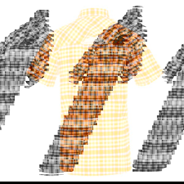 This checked travel shirt is made from 96% polyester and 4% elastane in a stretch fabric. It has a short-sleeved cut with a turn down collar and a button-down fastening. A logo detail adds a branded finish.