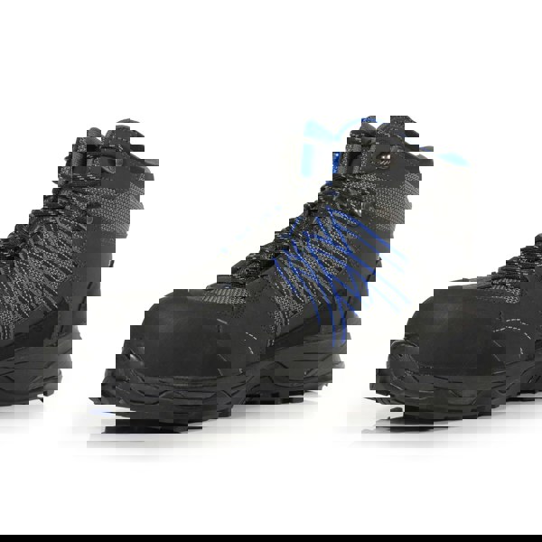 Underfoot, the insole uses EVA, with an EVA (ethyl vinyl acetate) midsole that is penetration resistant. The rubber outsole is oil resistant. Built to meet EN ISO 20345:2011 S3 SRC, this pair is completed with a steel toe cap and heel energy absorption rated at 200 joules. Water-resistant fabric technology supports use in wet conditions.