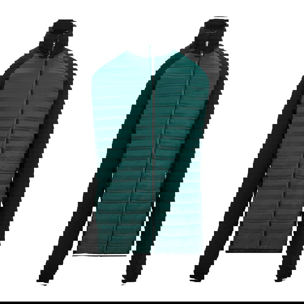 This hybrid jacket is made from elastane, polyamide and polyester, with a 37gsm construction. It comes in Mediterranean green and black with a printed logo design. A durable water repellent finish is paired with flexible, lightweight fabric technology and Warmloft insulation.