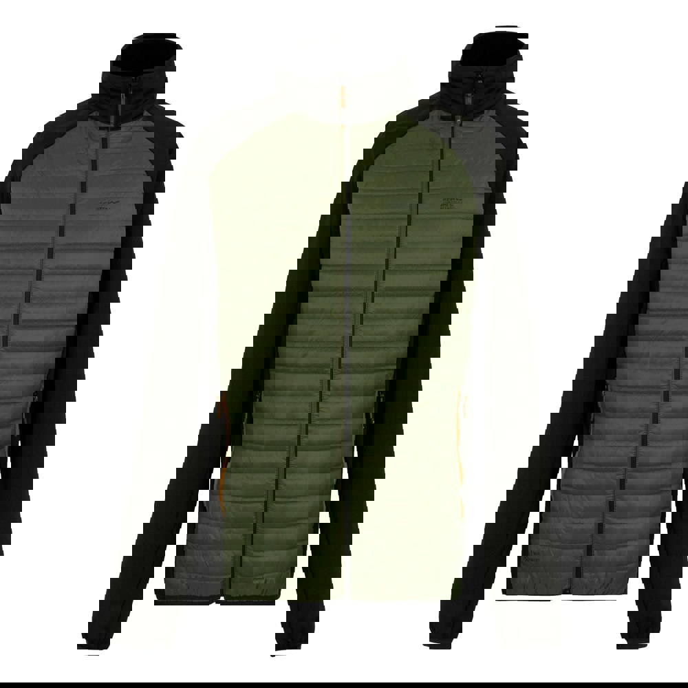 This hybrid jacket is made from elastane, polyamide and polyester, with a 37gsm construction. The olive green outer is finished with a printed logo and uses a durable water repellent finish. Flexible, lightweight and insulating, it includes Warmloft technology and stretch panels for ease of movement.