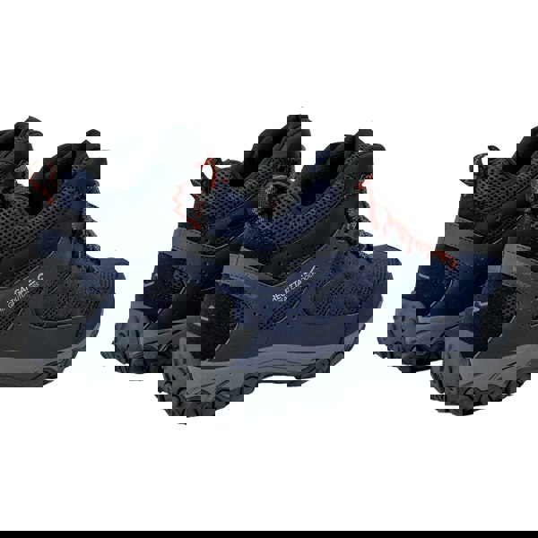Regatta Edgepoint IV walking boots are built with a durable upper in polyester, PU (polyurethane) and synthetic materials. The upper is water repellent and water resistant, with an Isotex membrane in the insole. Cut to the ankle with a low heel, this lace-up pair is finished with contrast detailing and logo branding.