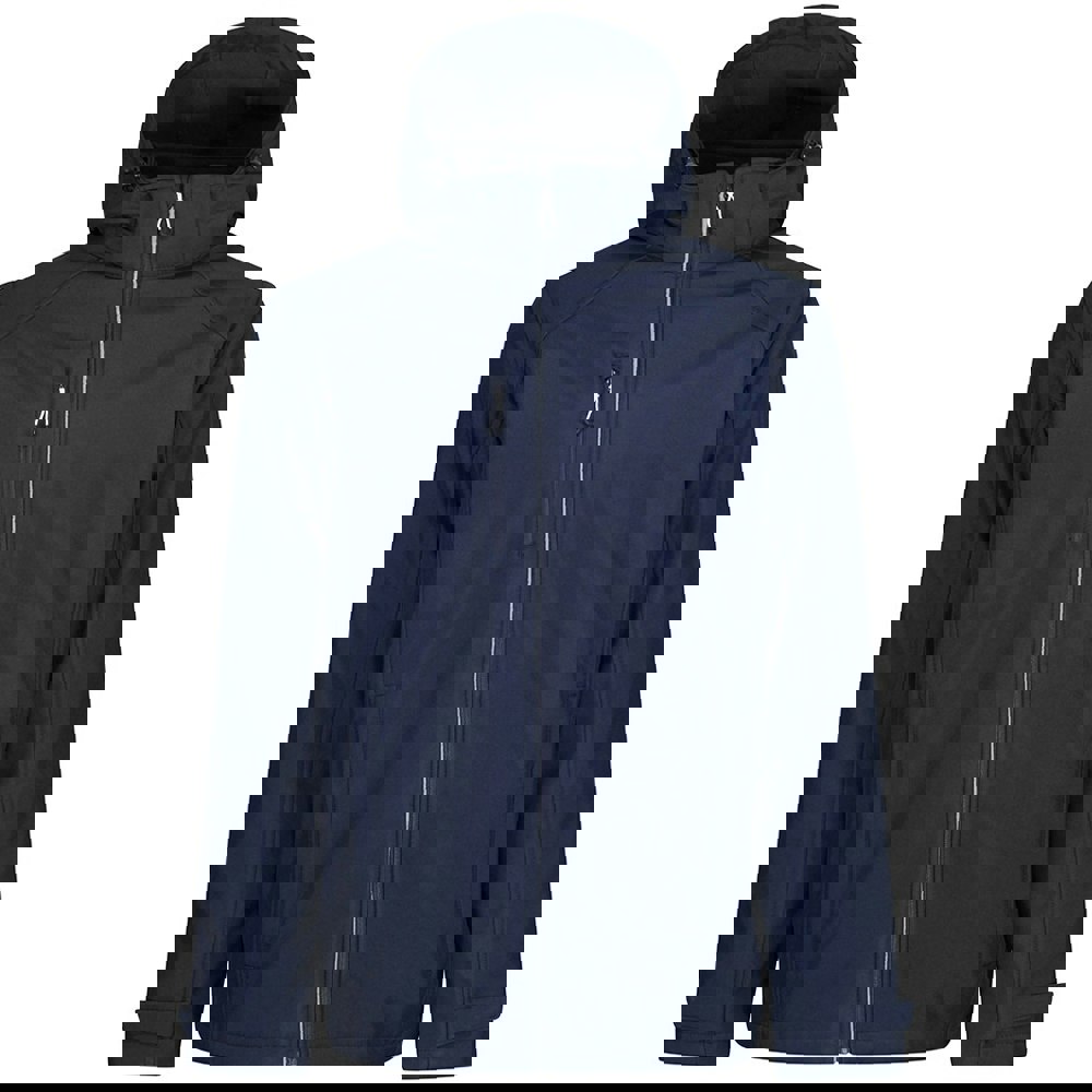 This Regatta Erasmus 4 in 1 soft shell jacket is made from polyester with a triple layer fabric and a microfleece lining. Finished in a plain navy design, it has a regular fit and regular length for straightforward everyday wear.